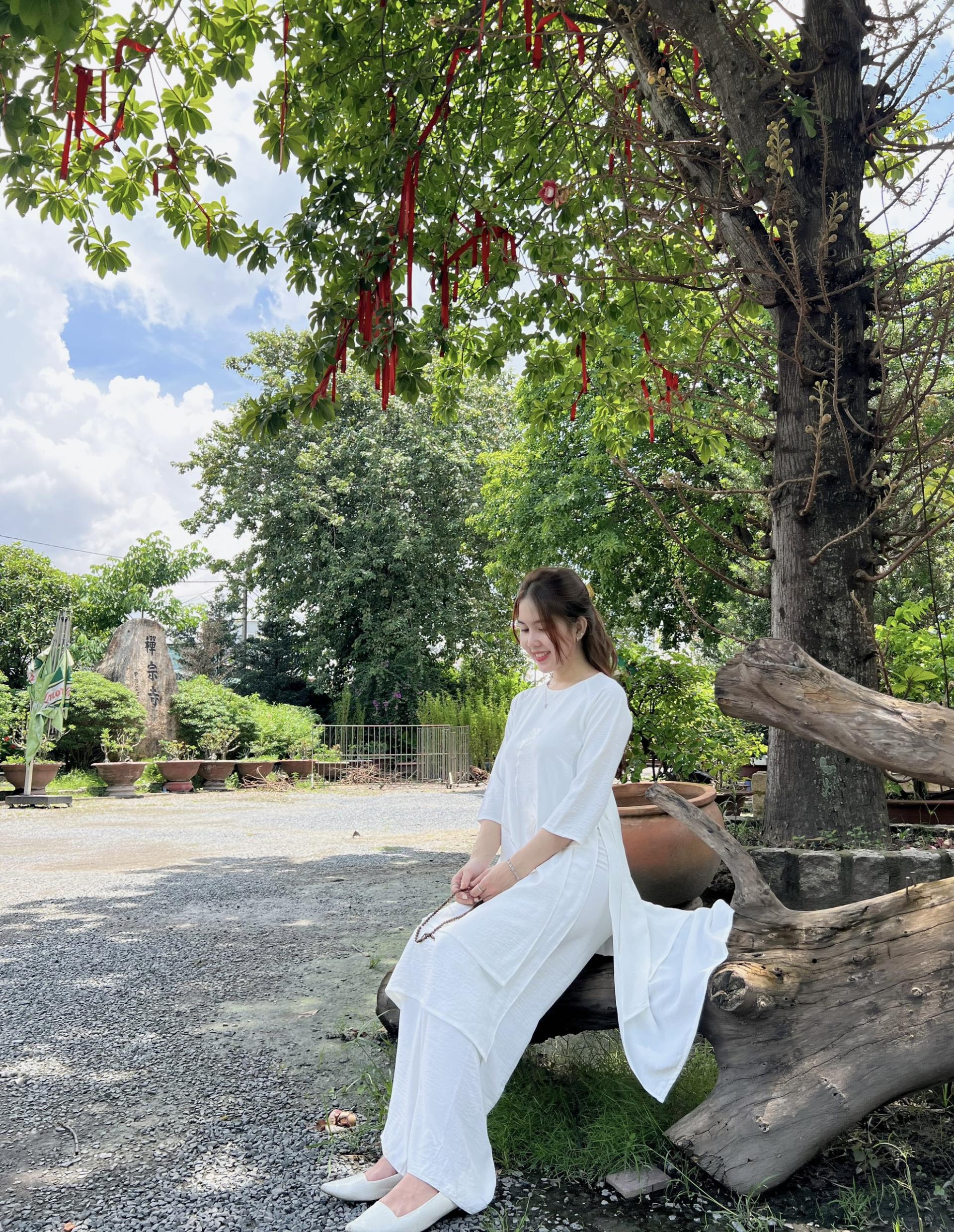 Pháp phục Áo dài thiêu sen 2 lớp - Chất liệu vải đũi, có độ co giãn, vải dầy mặc không nhăn