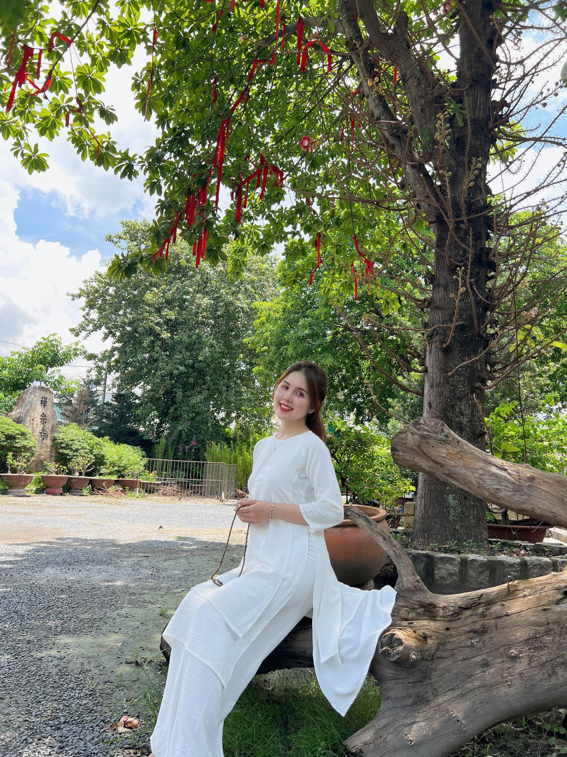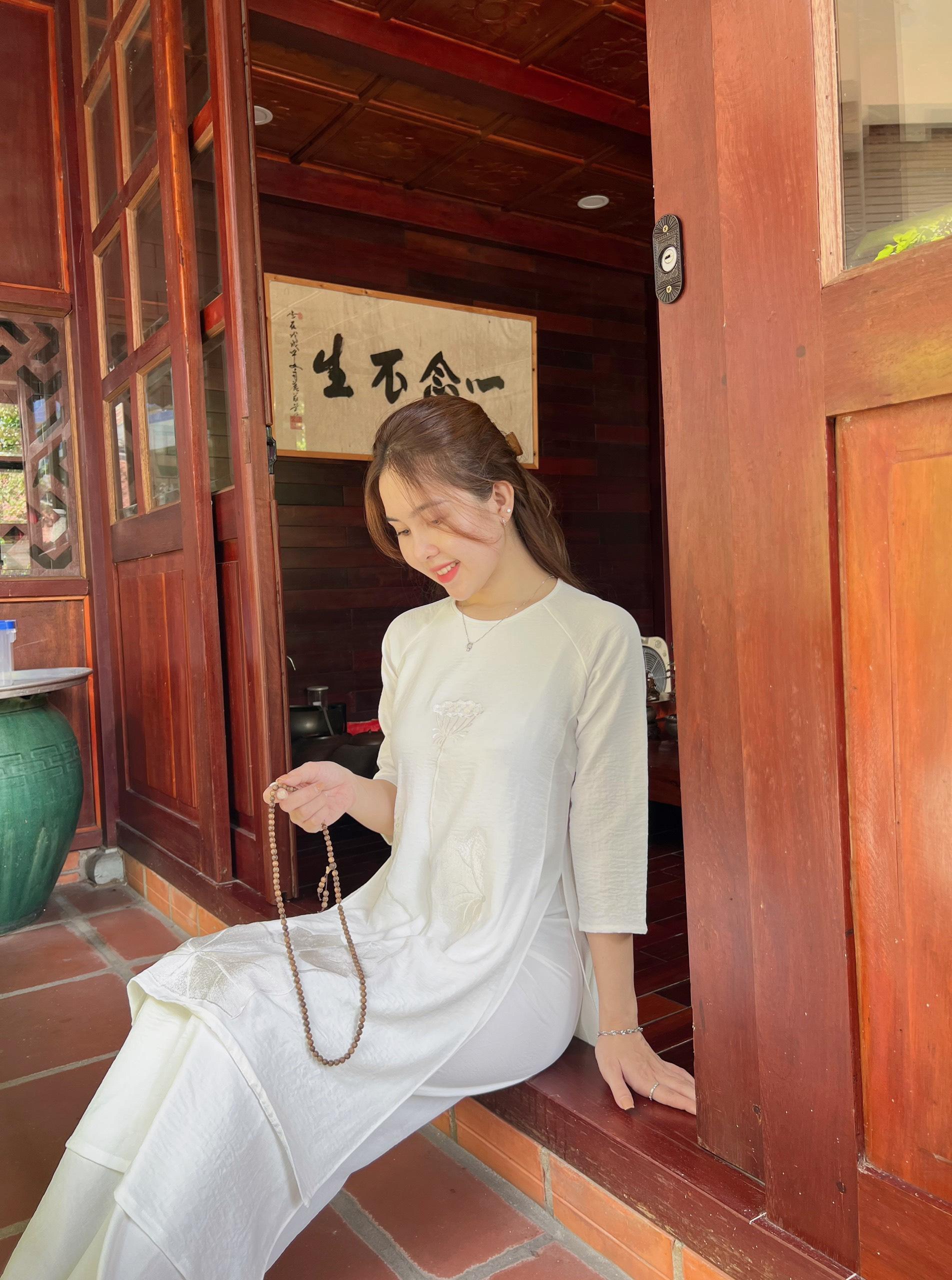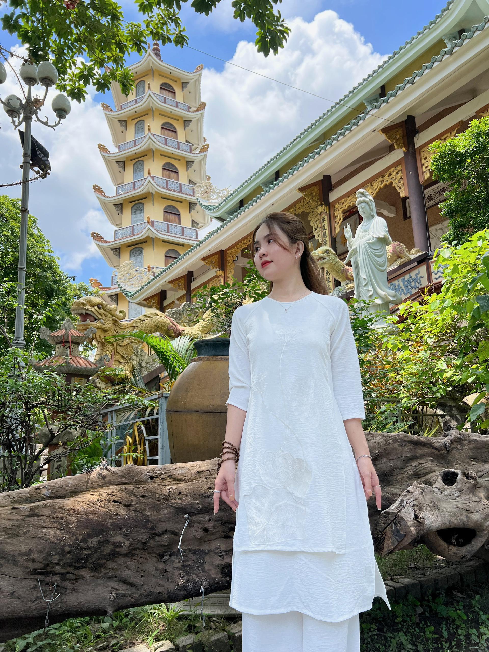 › Pháp phục Nữ› Pháp phục Áo dài thiêu sen 2 lớp - Chất liệu vải đũi, có độ co giãn, vải dầy mặc không nhăn