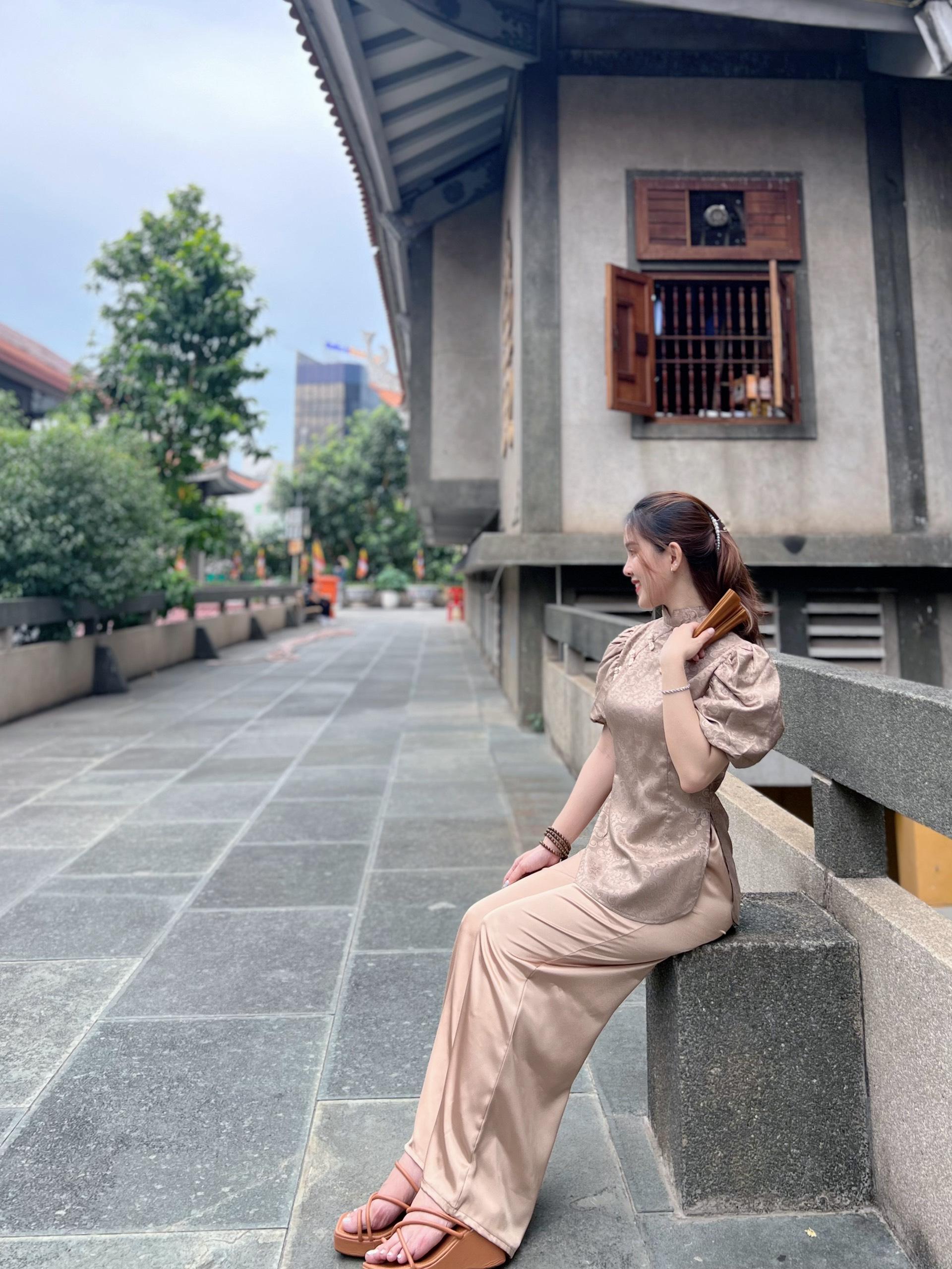 Áo Lam đi Chùa - Mẫu Tim Xéo Nơ - Màu nâu xám